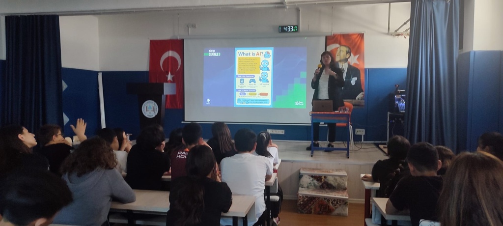 30.05.2025 tarihinde okulumuzda Asistan Profesör Doktor Sinem Bezircilioğlu tarafından Yabancı Dil Öğreniminde Yapay Zeka Araçları hakkında bilim söyleşisi gerçekleştirildi.